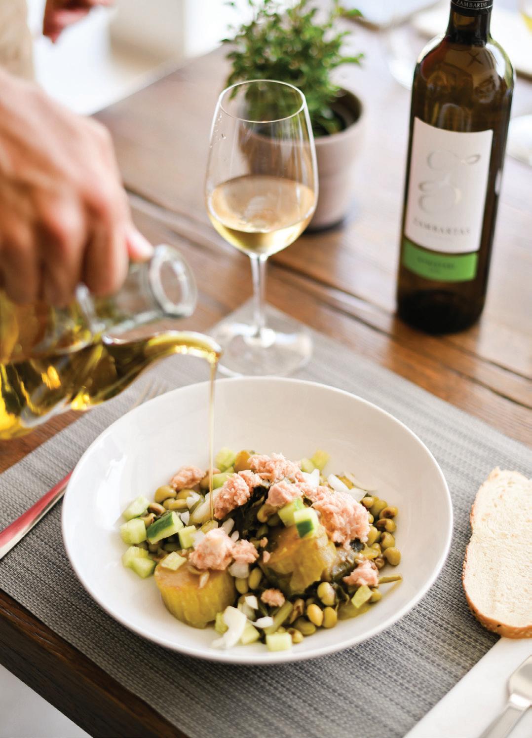 Zambartas xynisteri serveres med luovi – en tradisjonsrik kypriotisk rett med sortøyebønner og bladbete.