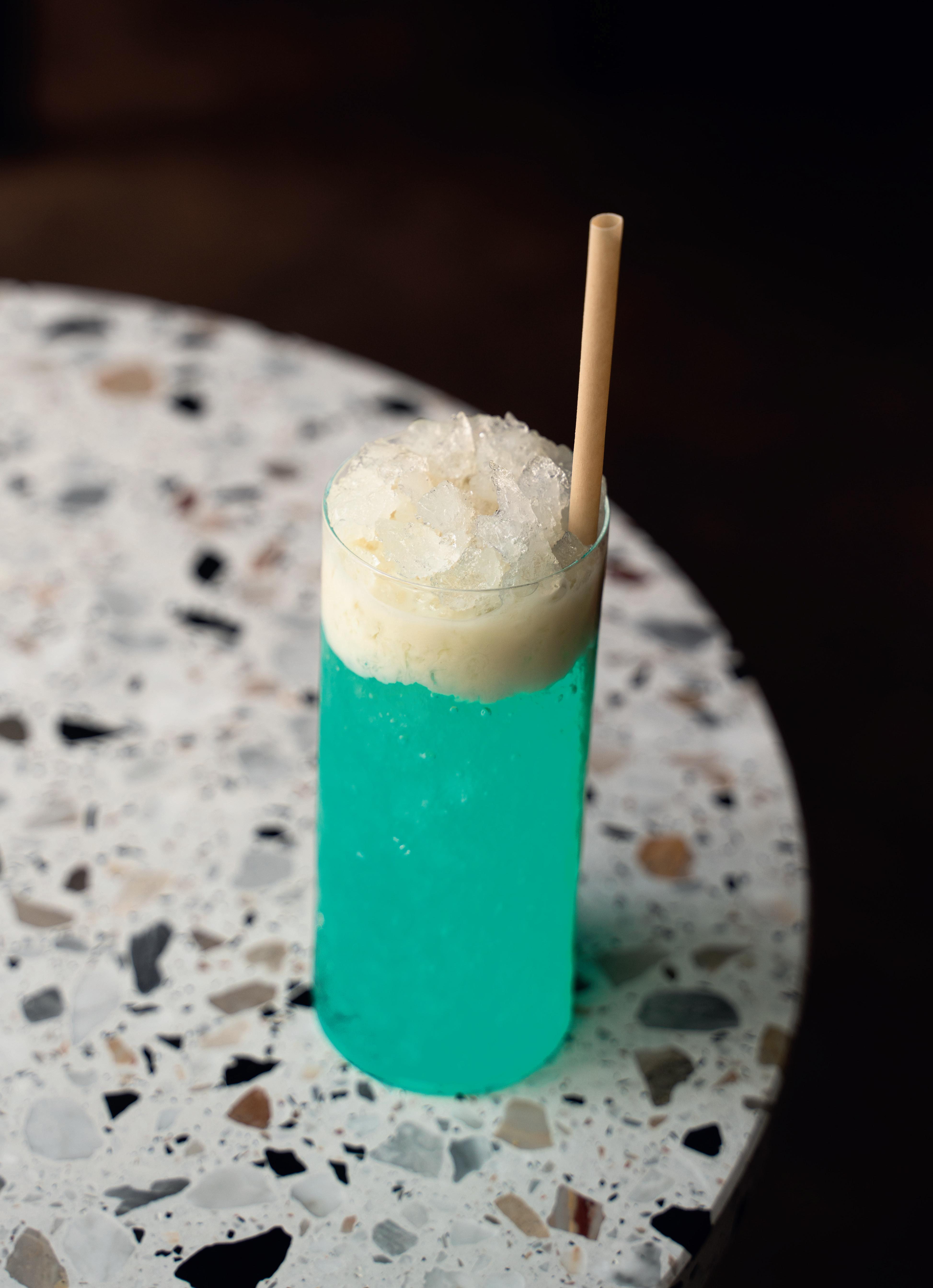 I vår-sommer-menyen som fikk inspirasjon fra Sørøst-Asia og dels Japan, ble det Green Curry Colada. Den er laget av rom, kokossirup, grønn curry, thaibasilikum, svart pepper, lime og Curry Bitters. En drink som bare ber om en til.