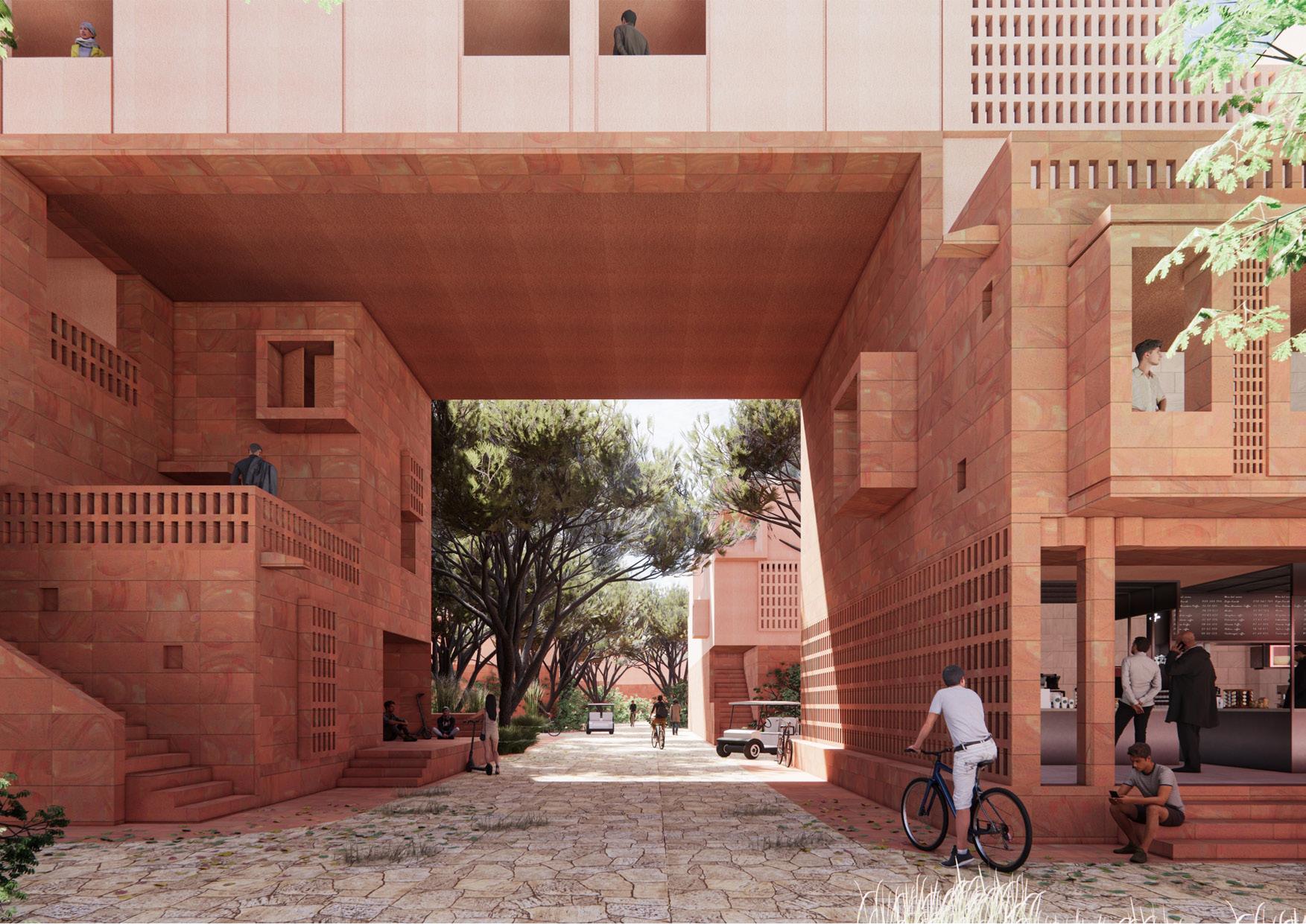 The design creates three elements which showcase their functions; scientific labs; serviced apartments for visiting specialists and scientists; staff offices, conference amenities and auxiliary spaces, all integrated by a landscaped plaza to promote relaxation and wellbeing.