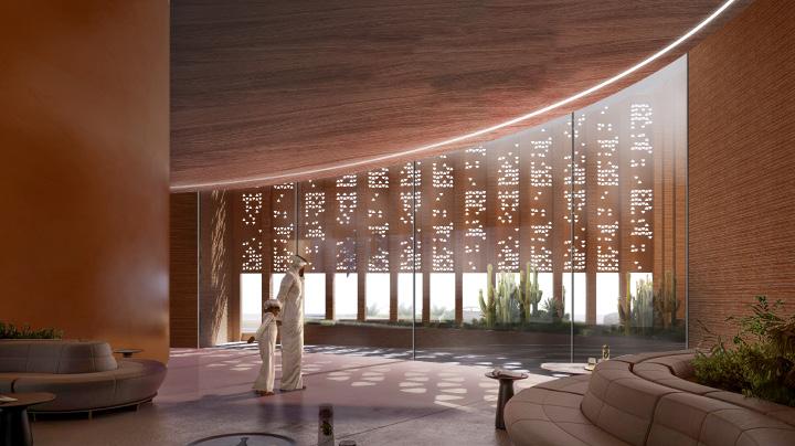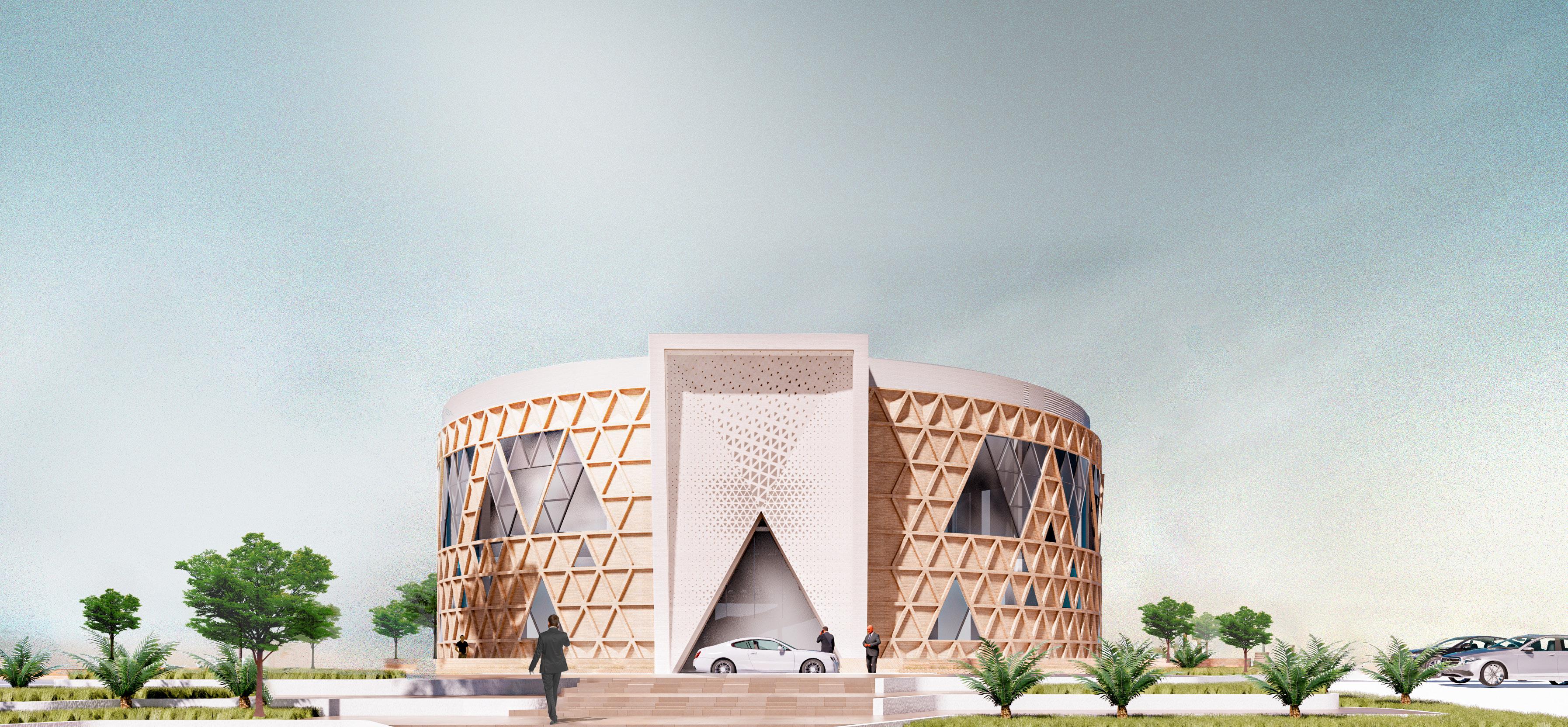 This project is a part of the Solar PV Project and located in Sudair Industrial & Business City, 160 km away from Riyadh to host visitors (VVIPs) at this Saudi Arabia’s first utility-scale renewable energy (PV) Independent Power Project (IPP).This center should provide a one of a kind experiential quality to the visitors. A state of the art, visually attractive experience and exhibition center utilizing digital applications, hardware, and modern technological nnovations in the field of sustainable power generation through solar power.Introverted planning, with functions around internal open space.Central courtyard designed as a Green Oasis acts as a relief space for the building. Integrating elements from Salamani Architecture in the façade design as well.