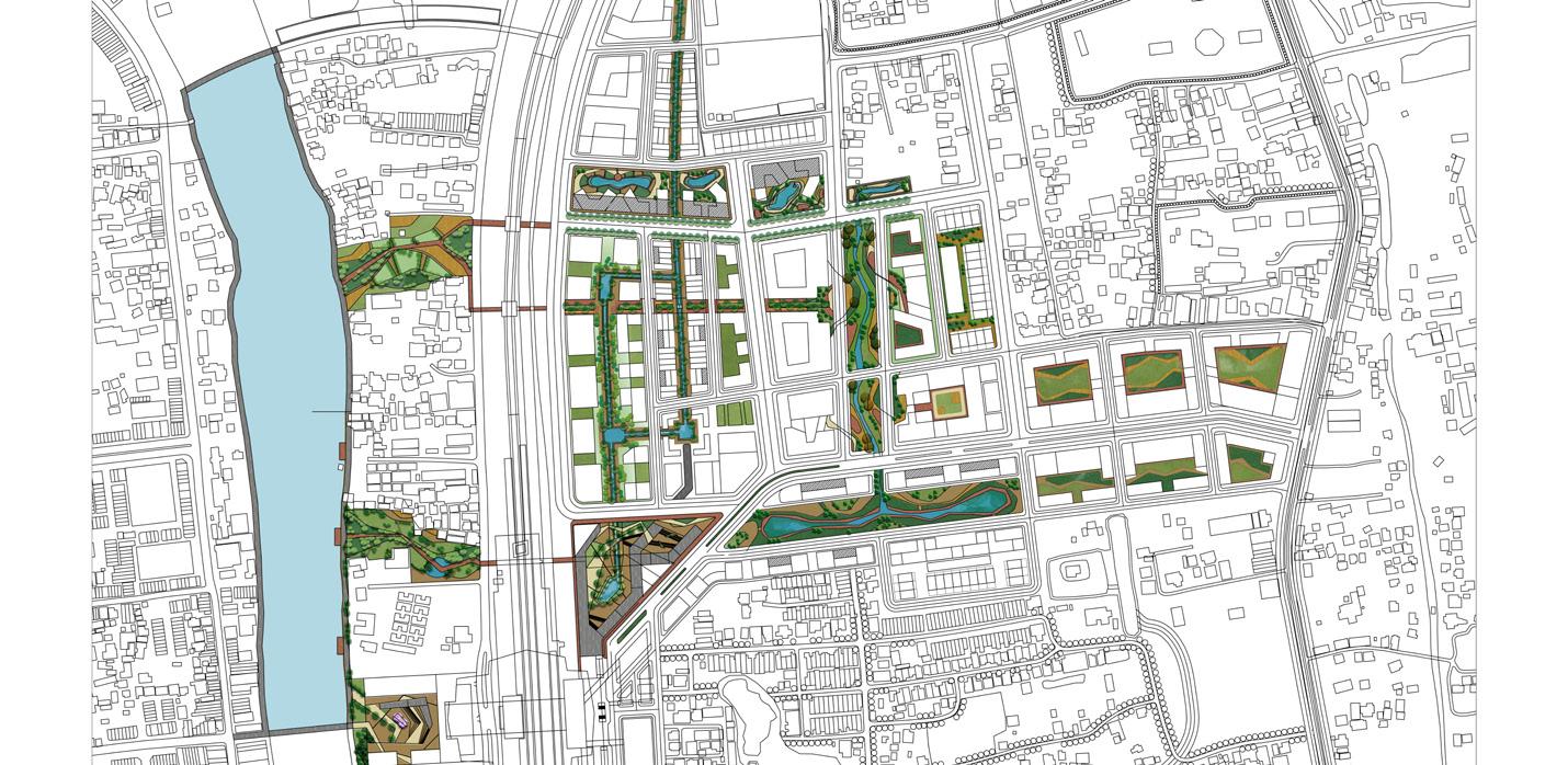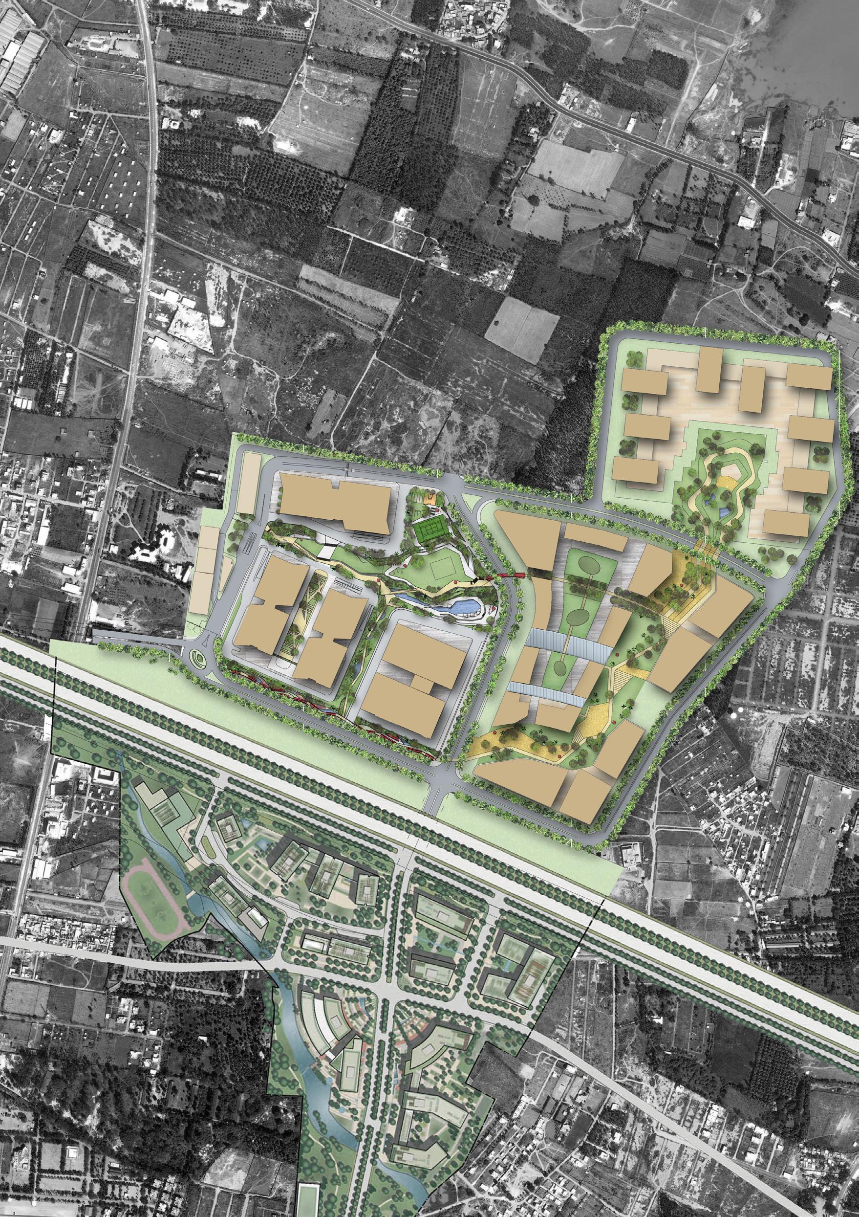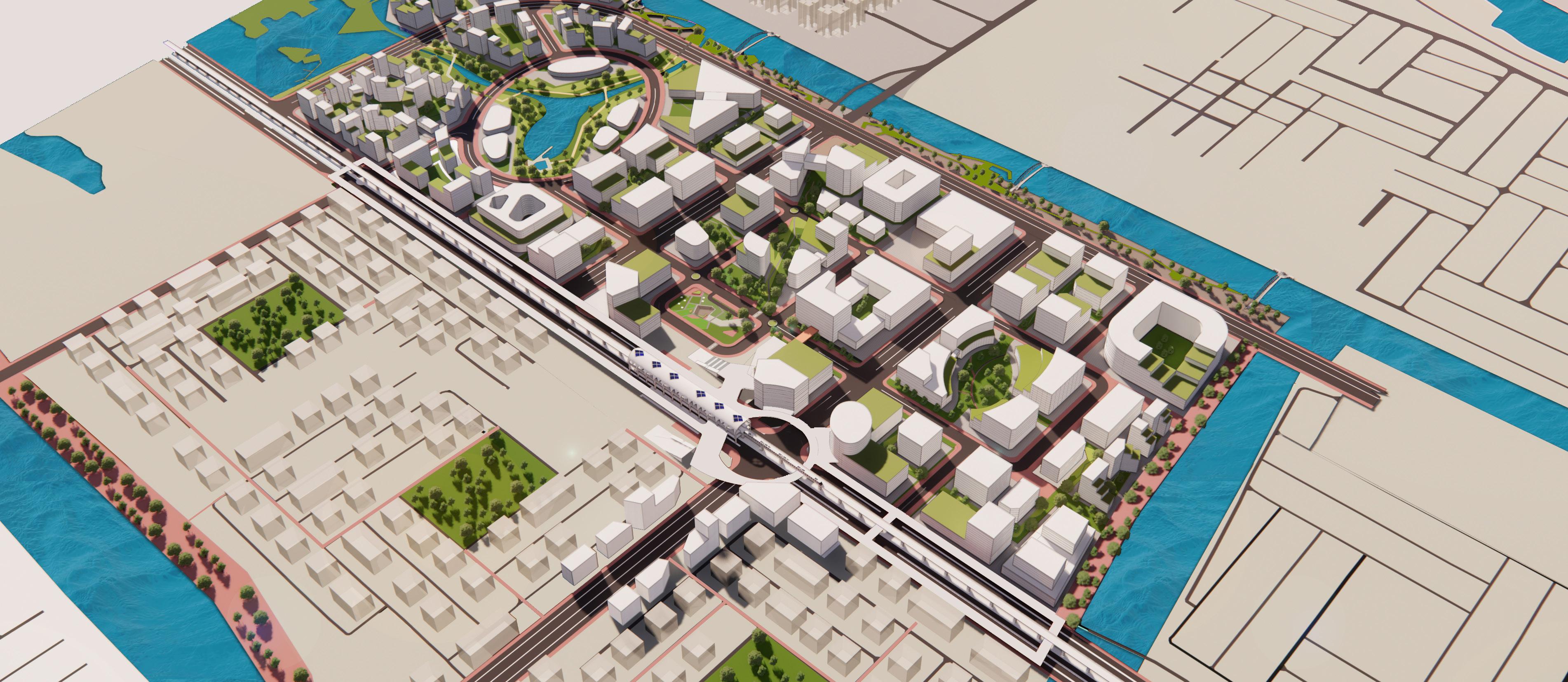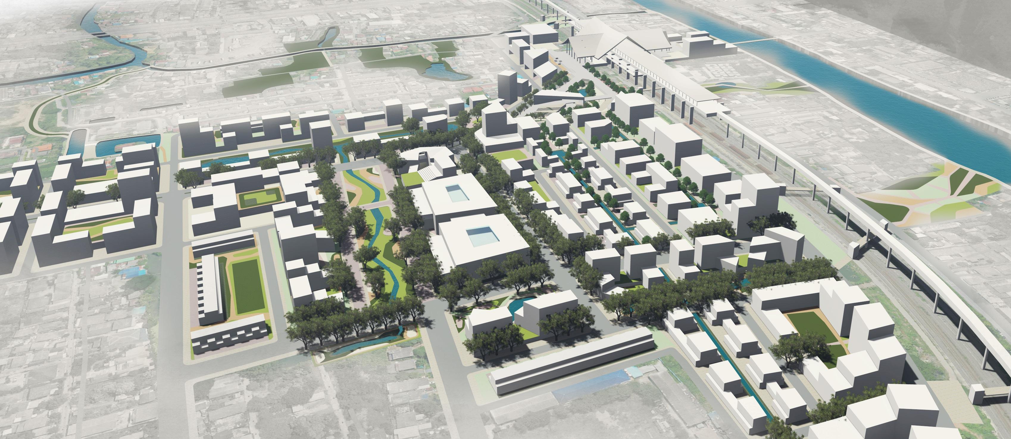 TOD Masterplans around High Speed Train Stations for Ayutthaya, Pattaya, Khon Kaen were developed. The design focuses on using the existing infrastructure and creating connections. A blue-green loop is created to have public landscaped spaces.
