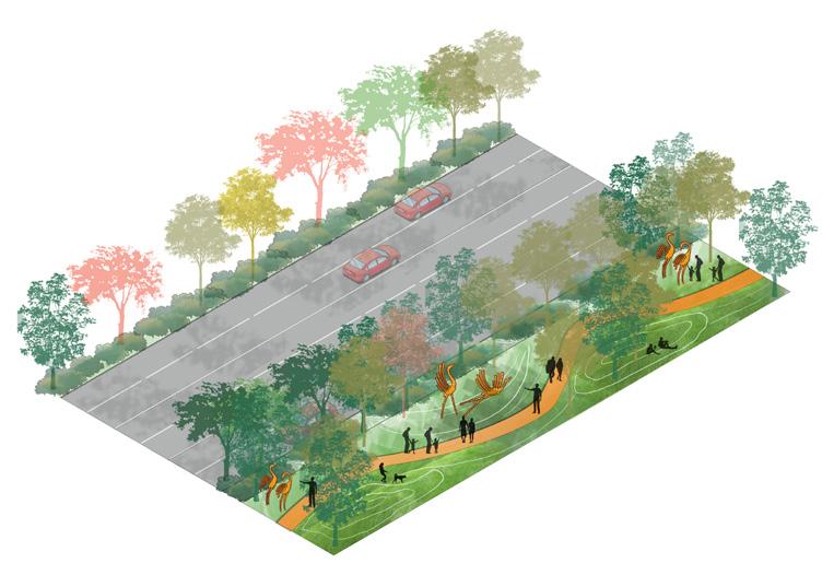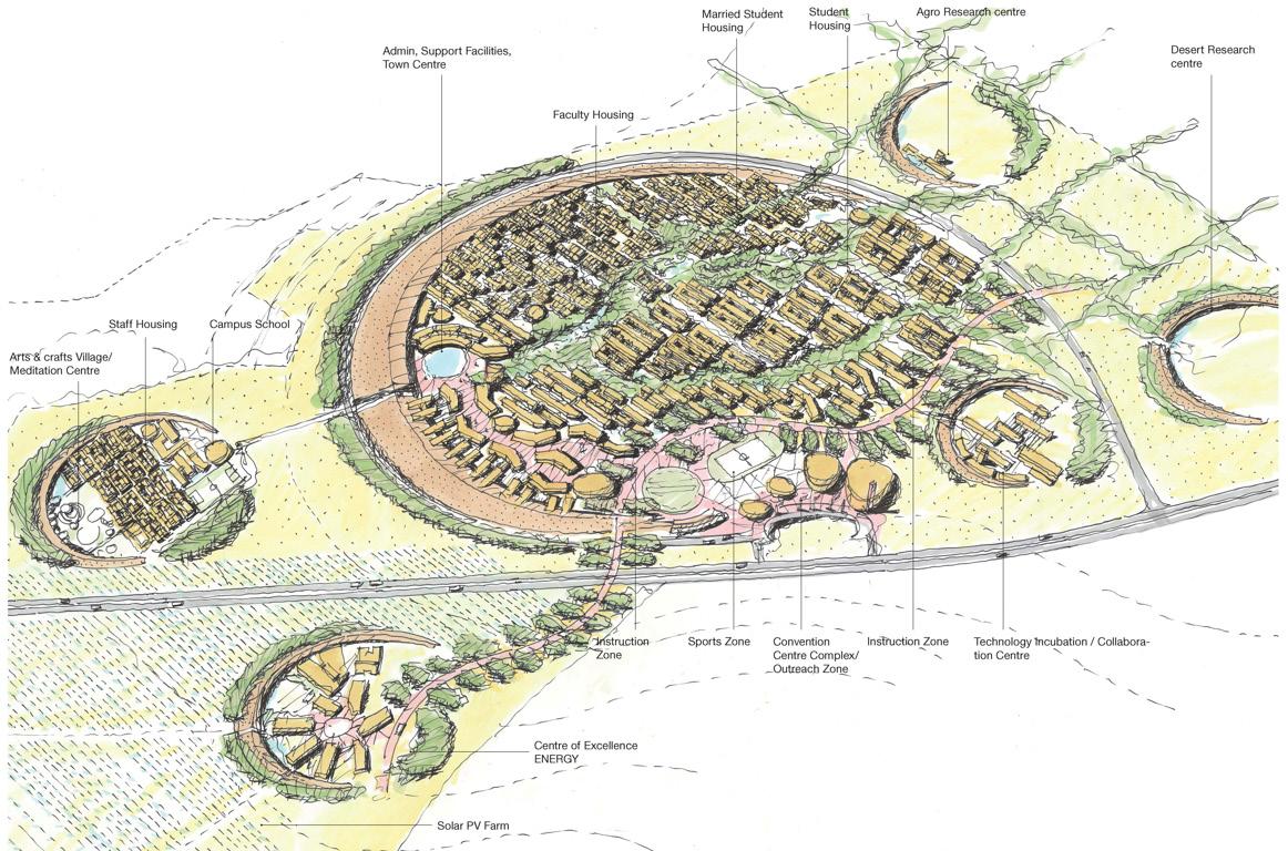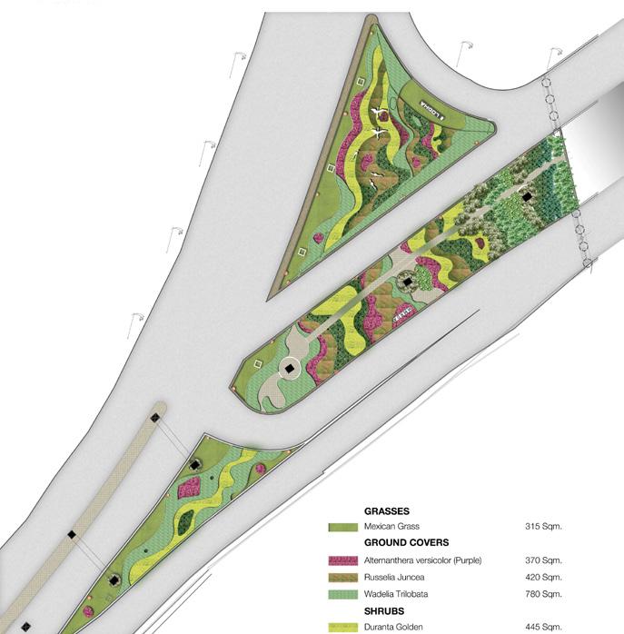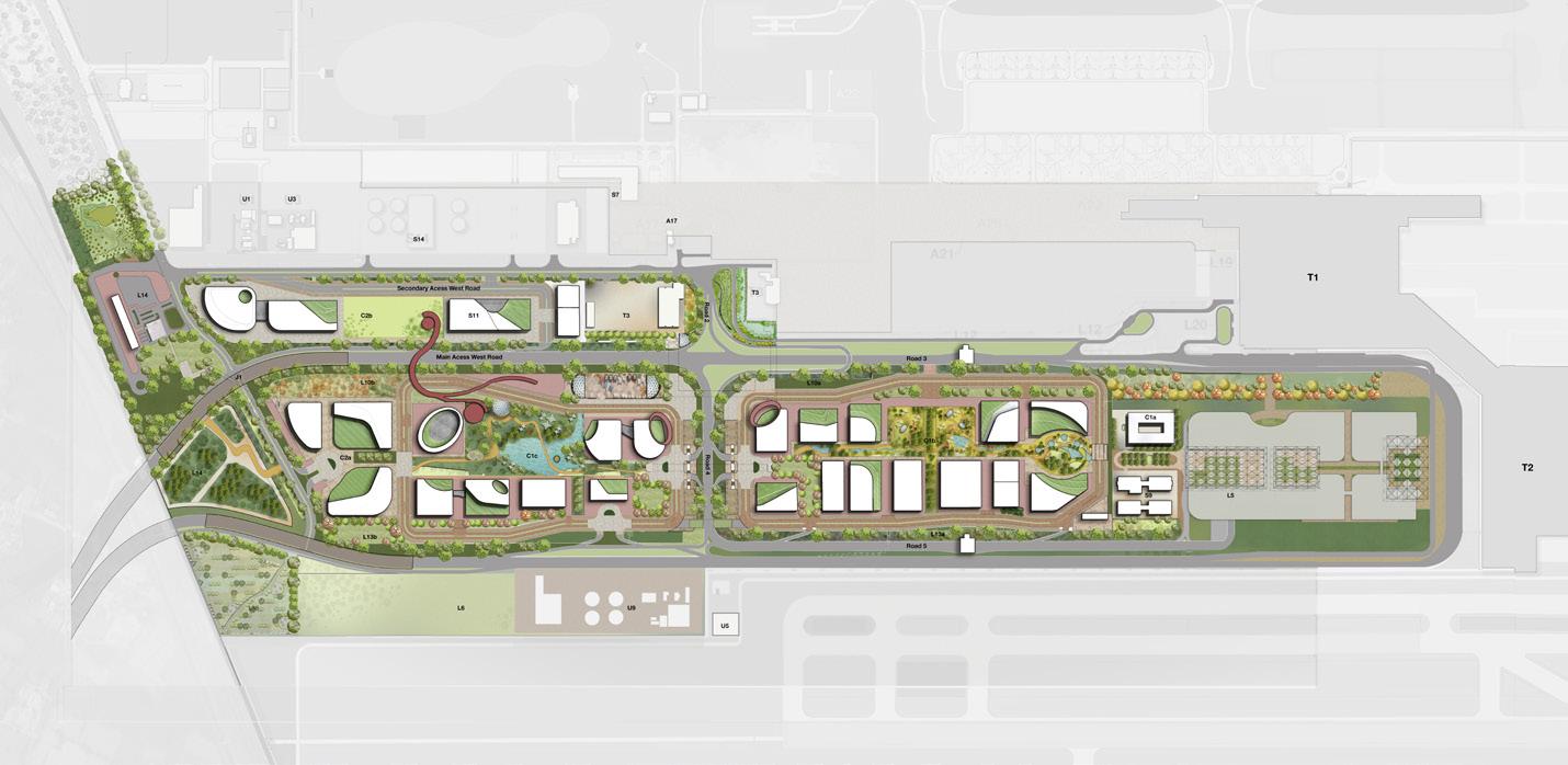 As part of the larger exercise, BDP also developed a concept masterplan for the entire 1334 Ha campus. The landscape concept included ideas on use of vacant lands in initial phases of the airport developments, strategies for trees, planting palette, design of key landscape areas like forest park, plane spotting park and swale park. Landscape team also worked with the infrastructure consultants to develop right RoW Typical cross sections keeping in view the landscape experience of the visitor.