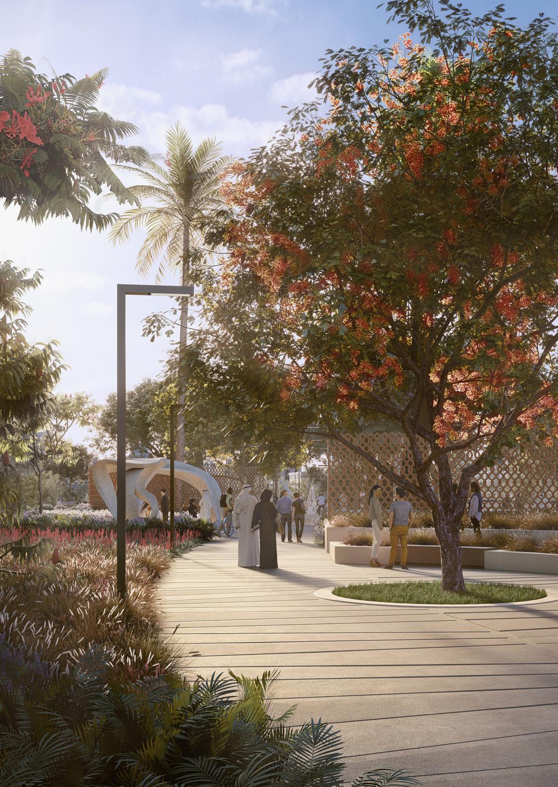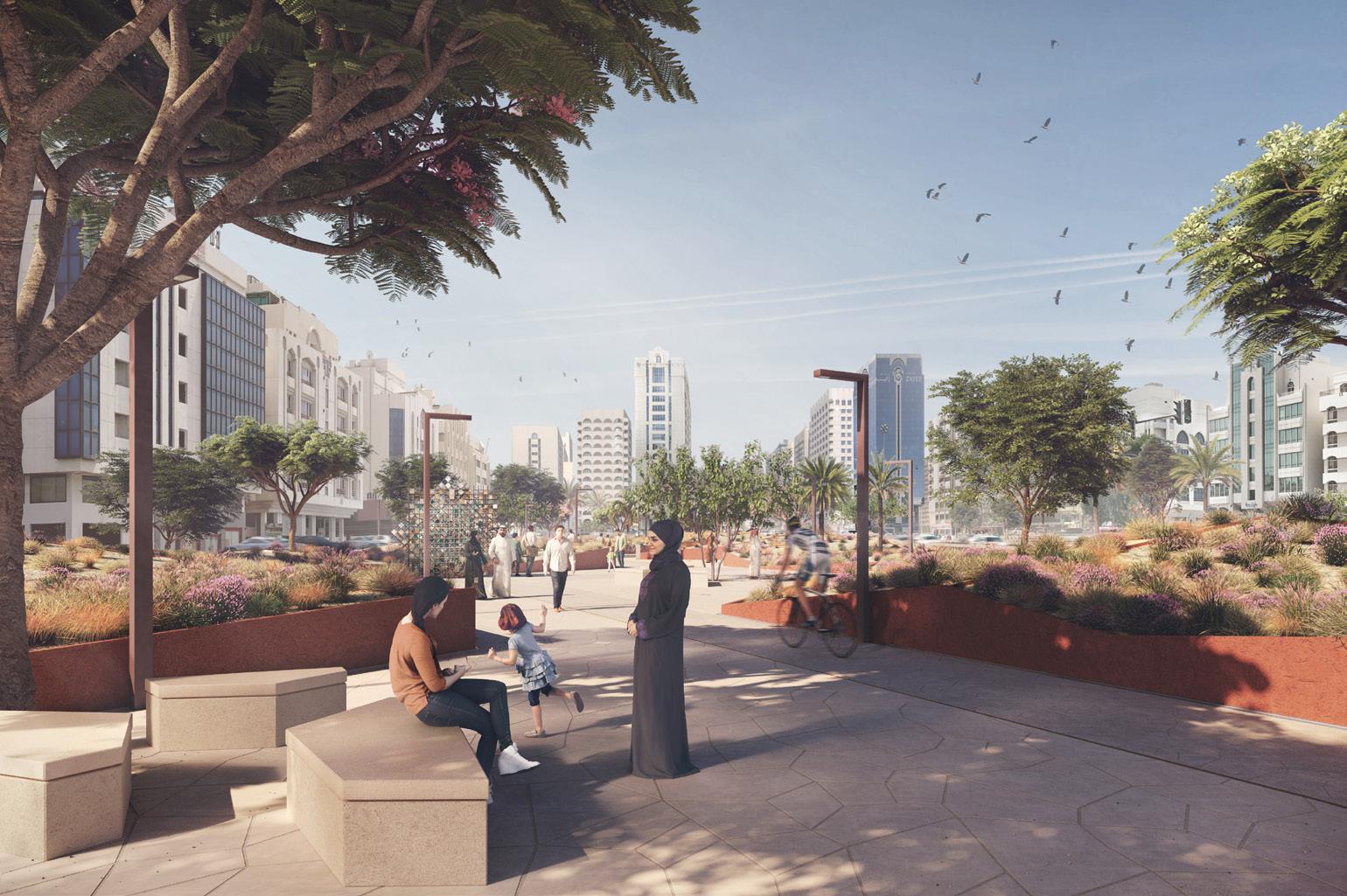 [Project description] Ghadan 21 is a very large, complex project to revamp the existing public realm and streetscape of the 6 Km Airport Road (Shaikh Rashid Bin Saeed Street) in Abu Dhabi. The scope includes six important themed vehicular junctions and the streetscape between them. This design focus includes improving accessibility, activation of parks, climate remediation, place making and improving network connectivity and creating a distinctive brand identity.