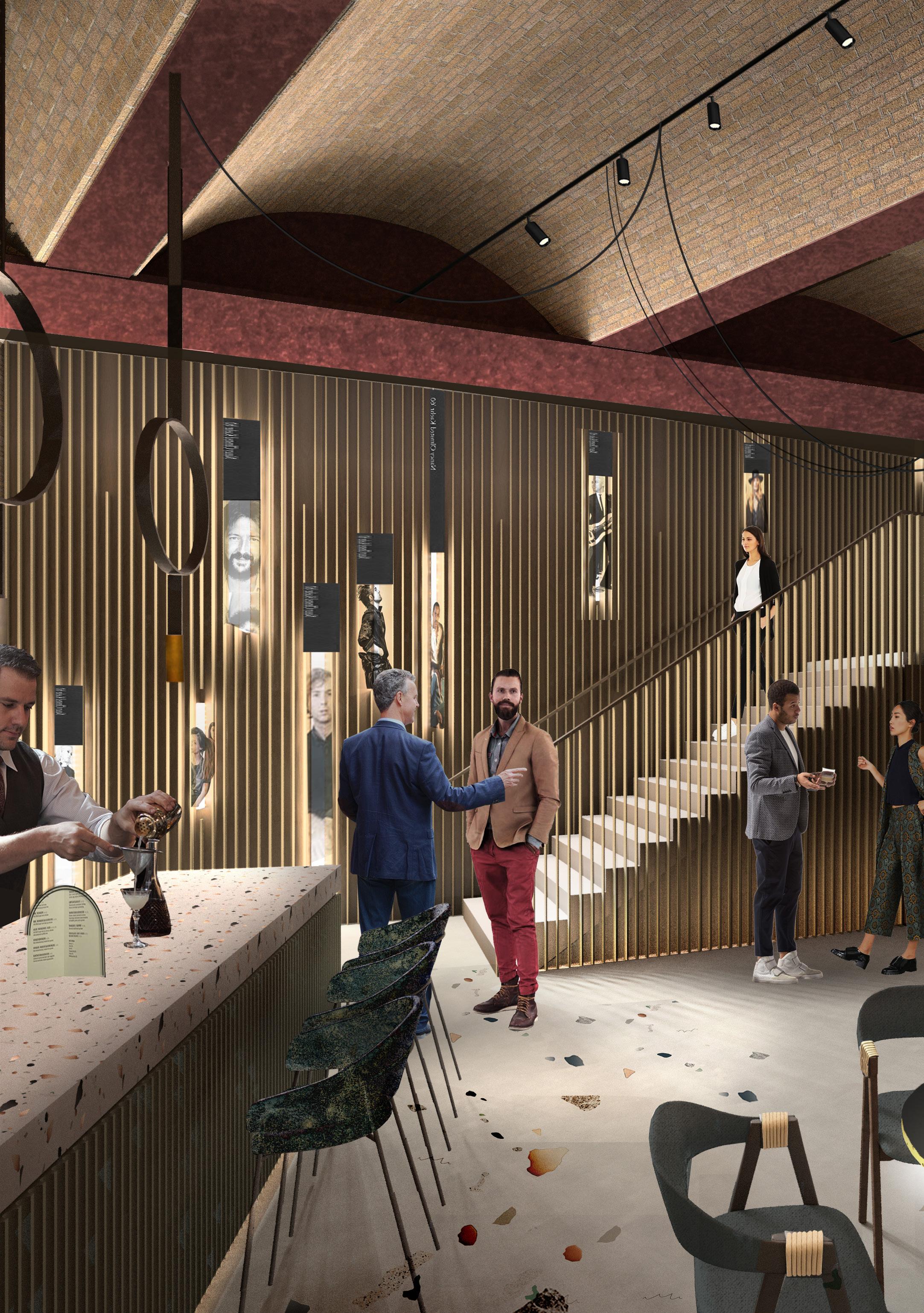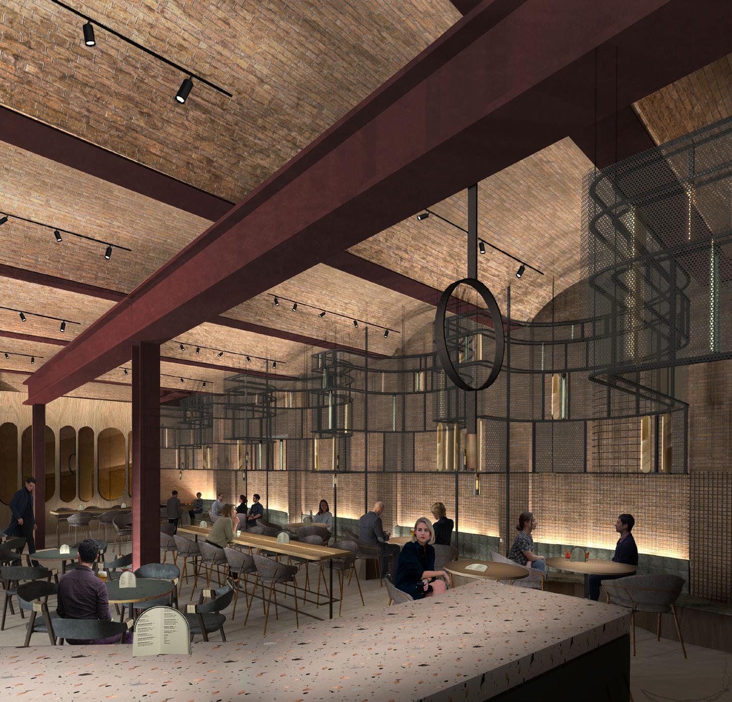 The Artists Bar, currently located in the B1 backstage corridor, is being relocated to the old B2 level boiler house once the new basement boiler house has been constructed and commissioned. The intent is to create a highly attractive space, sympathetic to the Hall’s heritage and to the original use of the space as a boiler house. The design makes reference to the previous use of the space as a boiler house and highlights the original brick vaulted ceiling and other original features.