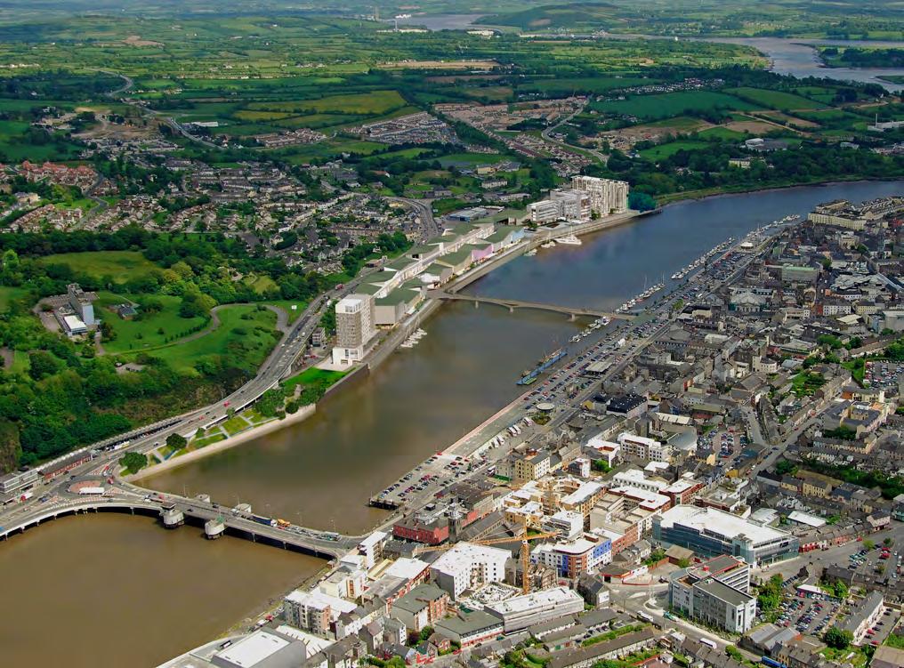 TheWaterfordNorthQuay Developmentisanewmixeduse lifestyleandrecreational destinationthatconsistsofa largeshoppingmallwithretail, foodandbeverage,cinema,a transportinterchange,4star 200-bedhotel,offices, residentialblocks,river boardwalkandavisitorcentre.