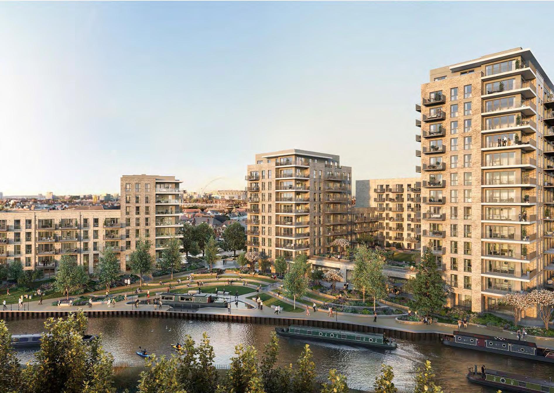 ThevisionforGrandUnion was toopenandtransforma previouslyderelict22-acresite, reconnectingthelocalareawith theGrandUnionCanalandRiver Brent,creatingandimproving routestoStonebridgePark stationandprovidingnew homes,newemployment space, publicopenspaces and local amenities.
