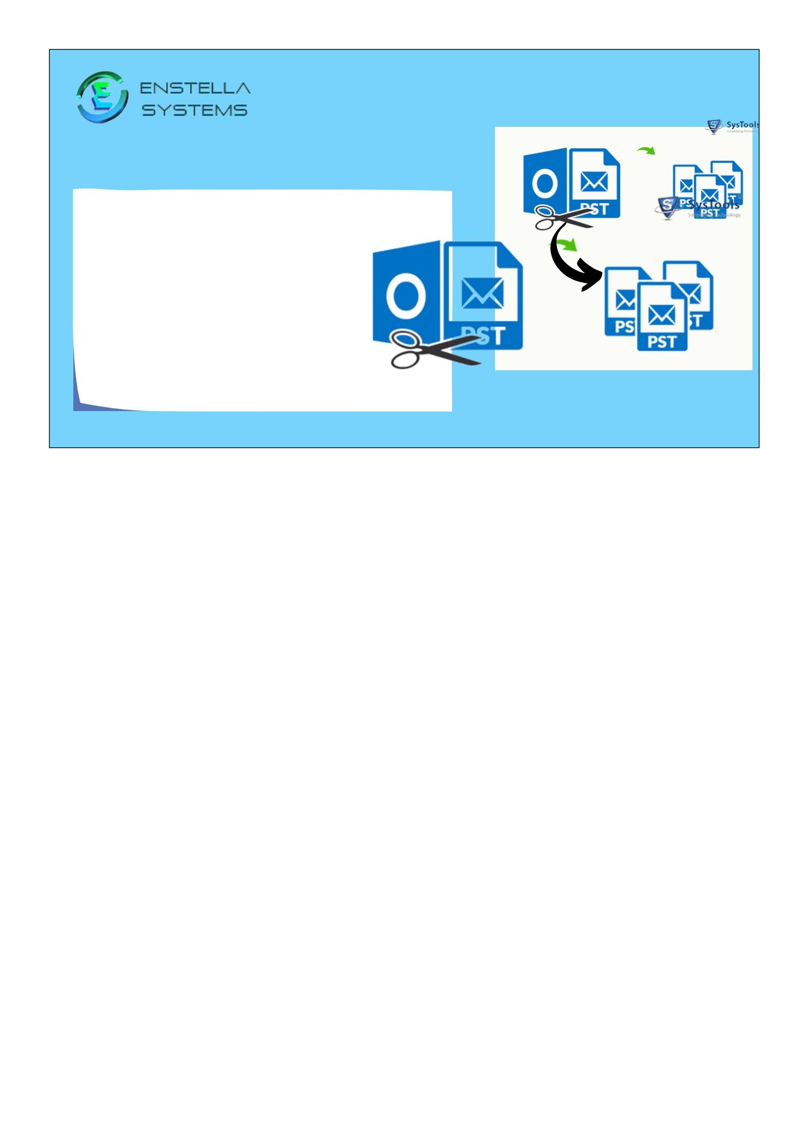 Reduce Size By Splitting You can convert large PST files into many small sizes of PST files from 1GB to 25GB and convert any size of PST files. https://www.enstella.com/pst-recovery.html Enstella PST Recovery Page 9 of 14