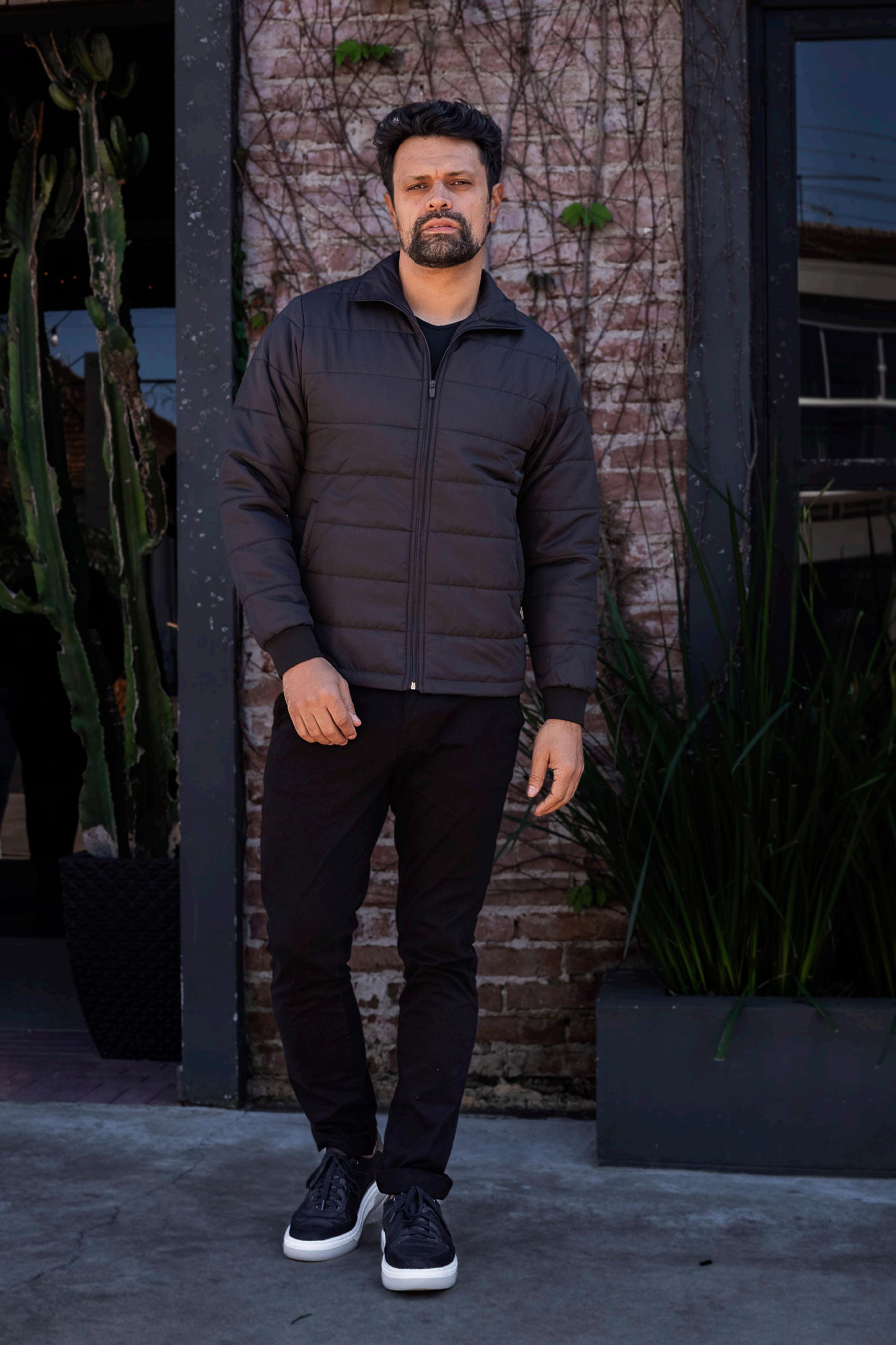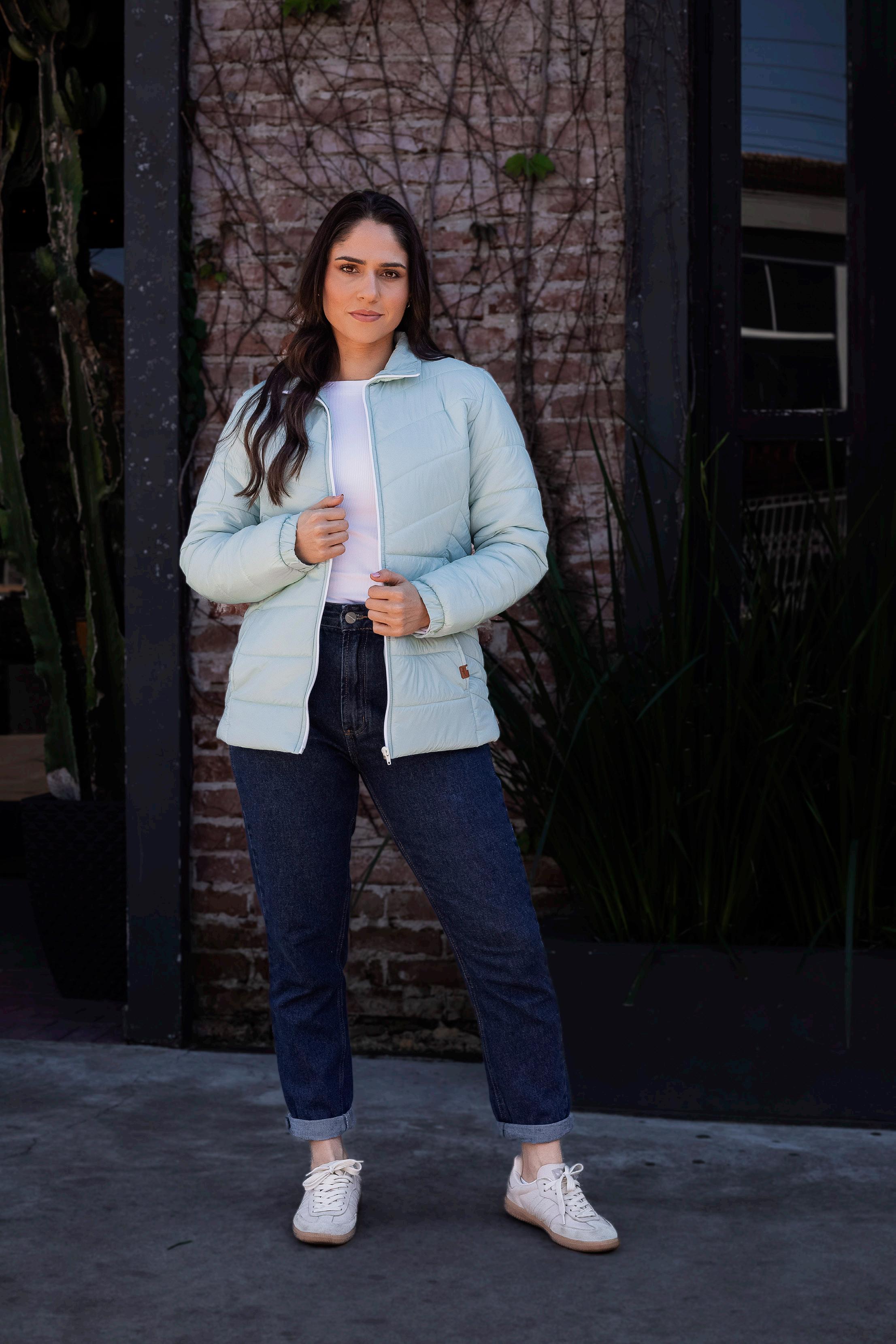 COM BOLSOS EMBUTIDOS | BARRA E PUNHOS EM RIBANA | LATERAIS C/ DETALHE EM RECORTE | ACOLCHOADA C/ FORRO LISO