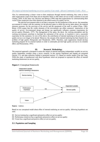 The impact of internal marketing on service quality (Case study: African Community Credit – West Also, by communicating a clearer vision to their employees through internal marketing, they come to know what organizations expect from them and are therefore likely to offer better service to their customers (Liao and Chuang, 2004). In the same vein, Reynoso and Moores (1996) state that organizations by communicating their vision to their employees draw their attention to the effectiveness of a quality service. The physical environment refers to all that is necessary for the production of the service: the immediate environment in contact with the customer (or the physical space in which the service takes place), the material elements necessary for the provision of the service and the equipment of the staff in contact (Flipo, 1986). Bitner (1990) argues that the visible elements of the environment can affect customers' impressions of the quality of service. Environmental design and design can significantly influence customer expectations for service quality (Shostack, 1977). The management of the space, the decor, the working atmosphere and the working environment contribute to facilitate the realization of the service, to transform it into a successful experience for the customers. In view of the above, the contribution of internal marketing to the provision of a quality service is no longer to be denied. Moreover, the concept of the internal marketing has been found to be a problem of high quality (Panigyrakis and Theodoridis, 2009). Therefore, each organization should develop marketing program for its external markets in order to continually provide high quality services to its clientele (Berry and Parasuraman, 1991).
