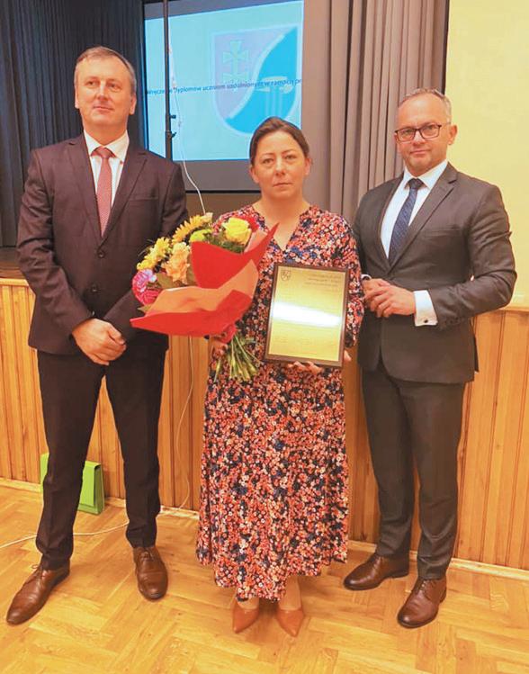 Podziękowanie za pomoc W uroczystości uczestniczyły także dwie Ukrainki – Olena Dmytryk i Ines Oleksy, które mieszkając w Polsce pomagają tym, którzy zostali w Ukra inie. Przejęte losem swojej ojczyzny, która dziś – jak kiedyś Polska – wal czy o swoje prawo do swobodnego życia, bez kajdan i poleceń z Kremla angażują się w akcje charytatywne, zbiórki żywności, odzieży, środków higienicznych, leków a nawet zakup kamer termowizyjnych czy używane go samochodu dla żołnierzy. Udzielają także wsparcia psychicznego i moral nego dorosłym, wspierają dzieci ukra ińskie w nauce w polskich szkołach. Za wszelką dobroć, wsparcie i pomoc udzielone Ukraińcom przez Polaków, dziękowały podczas uroczystości.