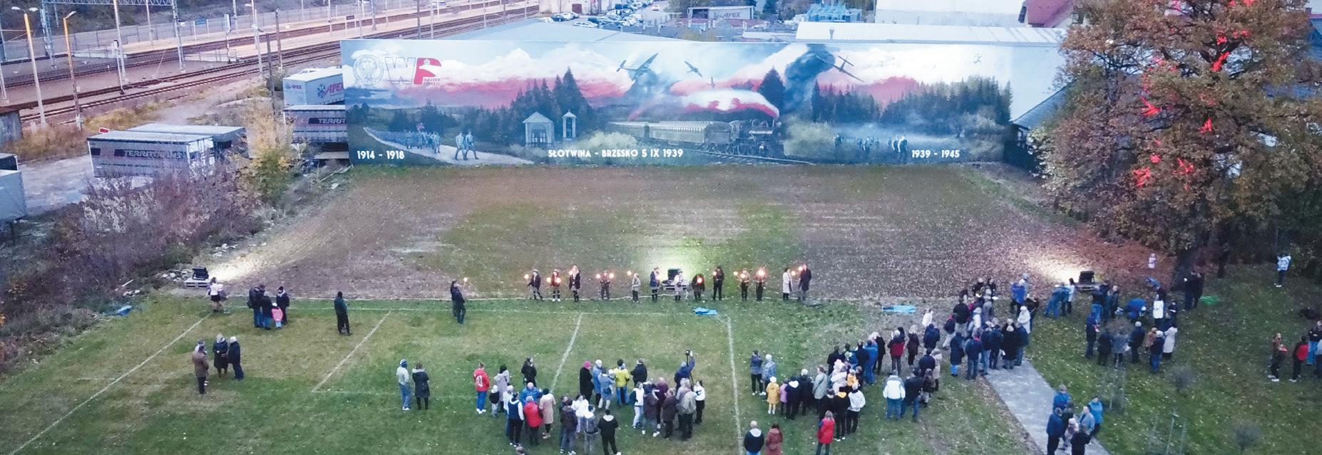 nia „Historia na ścianie – utworzenie muralu w Parku Leśnym upamiętniającego tragiczne bombardowanie pociągu ewakuacyjnego w Brzesku – Słotwinie z dnia 5 września 1939, a także walkę o wolną i niepodległą Ojczyznę w latach 1918 oraz 1939- 1945.” w konkursie „Mur, ale historia Wojska Polskiego” organizowanego przez Ministra Obrony Narodowej.