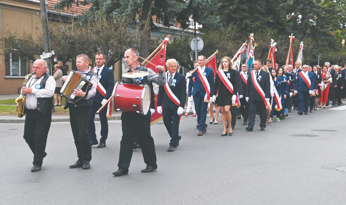 miejscem w Finale Ogólnopolskie go Przeglądu Orkiestr OSP – Busko Zdrój 2022. Kilkudziesięciu muzy ków wspomagali soliści: Weronika Czyż, Hania Biernat, Paweł Pradel i Wojciech Oleksyk. Zebrani wysłu chali m.in. Marsz pierwszej brygady, Pierwsza kadrowa, O mój rozmarynie, Rogatywka i wiele innych. Tradycyj nie, część utworów wykonywana była chóralnie, wspólnie z uczestnikami uroczystości. Pojawiły się: Wojen ko, wojenko, Rozkwitały pąki, Szara piechota, Przybyli ułani, a na bis za śpiewano Serce w plecaku. Wspólne śpiewanie i gminne uroczystości za kończył poczęstunek „patriotyczną” grochówką, którą przygotowały panie z Gminnego Ośrodka Kultury.