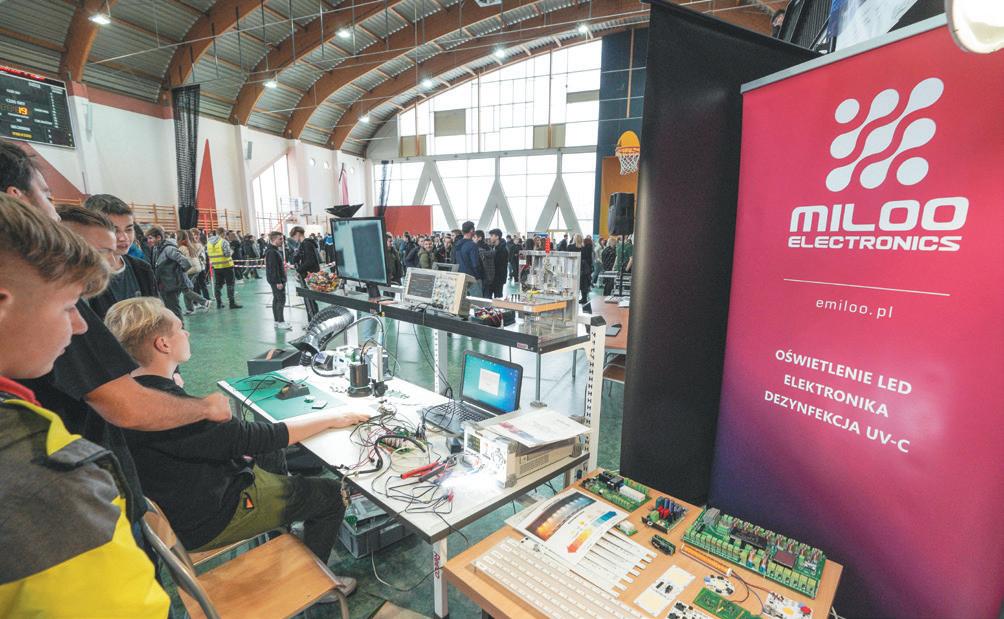 27 października uczniowie technika informatyka przeprowadzili warsztaty dla młodzieży kształcącej się w innych zawodach, wprowadzając ich w me andry informatyki. Uczestnicy warsztatów mogli wykonać swoje układy elektroniczne, a także za projektować sieć w topologii gwiazdy oraz serwer z usługą DHCP, korzystając z programu Cisco Pa cek Tracer stosowanego do symulacji sieci kompu terowych.