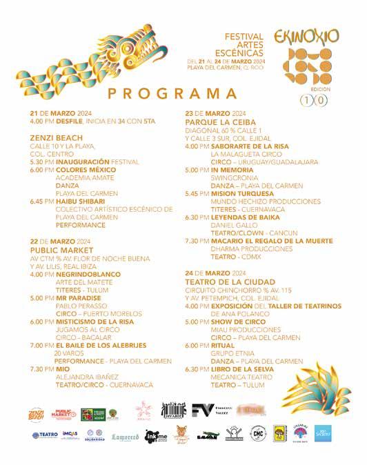la nueva edición del festival ekinoxio llega con renovada fuerza y entusiasmo, prometiendo una experiencia llena de magia, talento y amor, del 21 al 24 de marzo de 4 a 9 pm en Zenzi Beach Club, plaza public market, parque la Ceiba y teatro de la Ciudad de playa del Carmen.