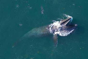el consumo de microplásticos de las ballenas. Las etiquetas en 191 ballenas azules, de aleta y jorobadas registraron más de 36,000 embestidas de alimentación de las ballenas y se utilizaron drones en el aire para medir la cantidad de agua capturada en cada embestida.