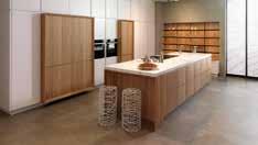 La madera se proyecta como el material por excelencia en el mobiliario de las cocinas de 2023. Desprende un estilismo directamente asociado al minimalismo cálido, que se caracteriza por los materiales naturales y los colores cálidos. Las cocinas (Gamadecor y XTONE) se configuran como espacios abiertos, donde el dúo de la madera más clara y el blanco potencian la luz natural y la amplitud de la zona, que con frecuencia se conecta con el salón o el comedor. Las lámparas de paja o colgantes en la isla central realizan una combinación perfecta, que se completa con los taburetes, del mismo color que las pantallas de la iluminación.