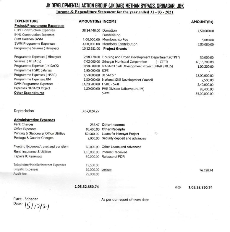 Him. We are grateful to our valued partners including donors, Government, volunteers, civil society networks, communities and well-wishers. Without their generosity and commitment, JK DAG’s endeavour to bring in change would not be possible. As we present the report to you, we seek your earnest support as we strive forth to bring a just, responsible and compassionate society