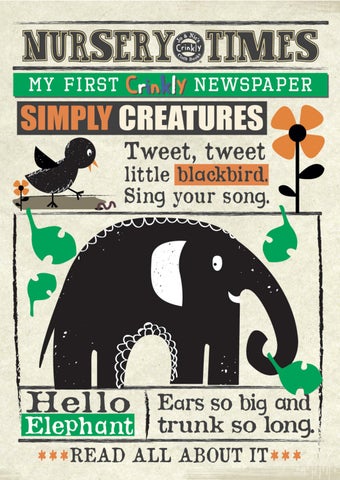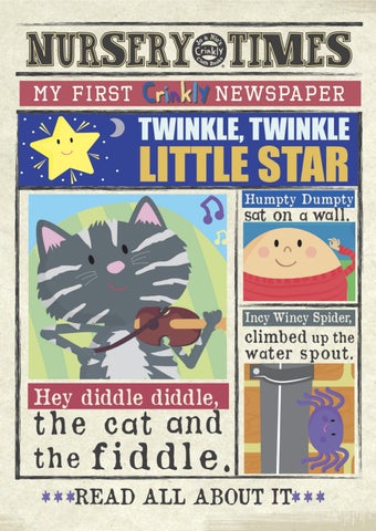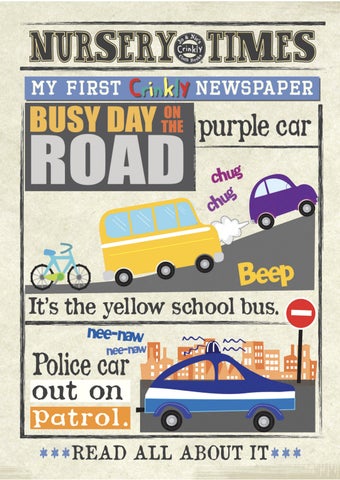 NURSERY TIMES Crinkly Cloth books uniquely designed to look like little newspapers. Six page cloth books with crinkly pages. Bright illustrations with rhyming text and preschool learning subjects. Over 100 titles in the range. Safe, washable and sensory. Available in all good independent book shops, toy shops and baby shops. Suitable for babies 3 months to 3 years. Perfect of babies and toddlers.