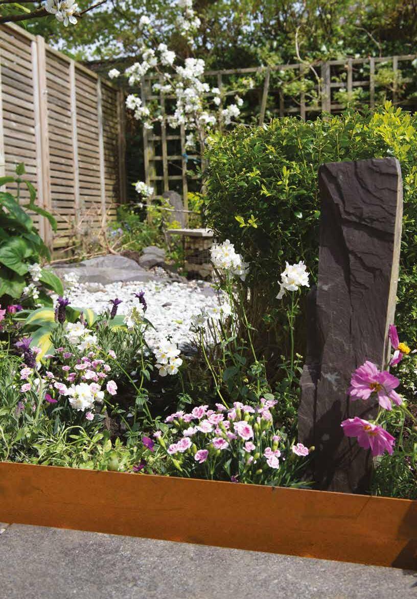 A collection of edgings to meet all tastes and budgets, including established concrete or contemporary steel edging.