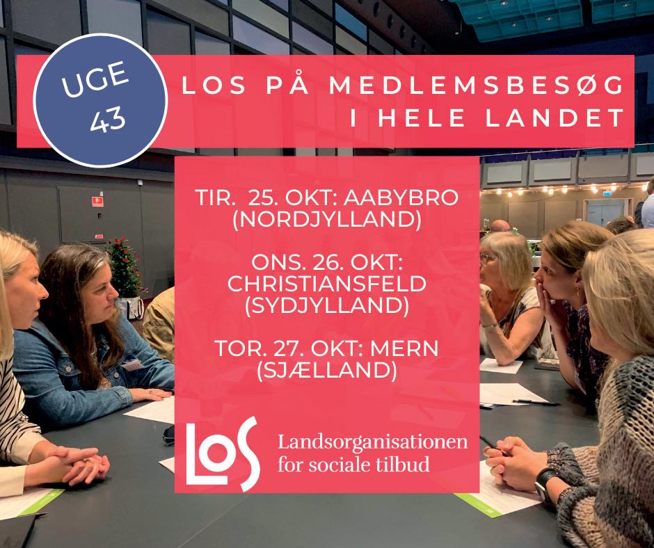 LOS kommer på besøg rundt i landet i uge 43. På møderne kigger vi blandt andet på resultatet af jeres mange input i både LOS’ medlemsundersø gelse og i arbejdsgrupperne på årets Landsmøde og der vil naturligvis være god mulighed for dia log. Samtidig er medlemsmøderne en fin mulig hed for at styrke dit netværk med lederne på de andre tilbud.