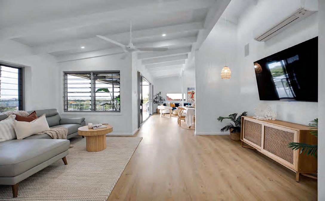 The stunning home features a stylish bathroom, modern kitchen with an abundance of storage, vinyl planking, air conditioning throughout, a front deck with stunning views of the Mackay city and ocean views, an outdoor deck for all entertainers and beautifully manicured gardens.