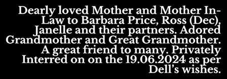 Family and Friends are respectfully invited to Celebrate Carrie’s wonderful life. A Requiem Mass will be celebrated at St. Joseph’s Church, North Mackay on Friday 21 st June, 2024 at 10am. Followed by internment at Mount Bassett Cemetery, Harbour Road, Mackay. Carrie’s funeral service will be live streamed