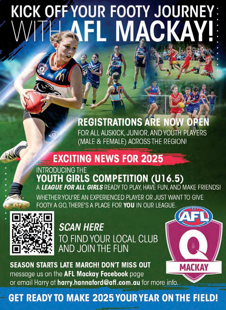 For those of us in the Northern Beaches, the blissful era of 10-minute trips into Mackay has ended, replaced by peakhour gridlock that stretches far longer if you miss the sweet pre7:30am window. And as traffic builds, it’s a timely reminder to take extra care on the roads. School zones are bustling with kids—on foot, scooters, and bikes—often too distracted by their mates or excitement to think twice before darting out. It’s up to us adults to stay patient, vigilant, and ready to hit the brakes at a moment’s notice. So here’s to a safe, successful, and slightly chaotic back-toschool season for everyone! Keep those lunchboxes creative, the school shoes tied, and your foot off the accelerator near the crossings.