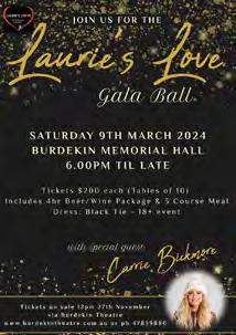 he Ayr Surf Life Saving Club held a Family Fun Day and Sock Disco on Saturday March 2. The day was a great success with locals coming down to enjoy the festivities. The dunk tank was a huge hit with both the young and old taking a turn to sink one of the Lifesavers braving the swing. Kids braved the slip and slide, and families en joyed a wide variety of outdoor games, face painting, fairy floss and popcorn. View the photos on pages 6-7 read on page 3 LOCAL FIRST NATIONS ORGANISATION APPROACHED FOR INTENSIVE ON COUNTRY PROGRAM Through Bendigo Bank, you’ll have car insurance you can rely on. Visit us in branch or at bendigobank.com.au/car to get a quote. Community Bank • Home Hill 4782 2249 • Ayr 4783 3288 Car insurance Bendigo and Adelaide Bank Limited ABN 11 068 049 178 acts under its own AFSL 237879 and under an agreement with the insurer Insurance Australia Limited trading as CGU Insurance ABN 11 000 016 722, AFSL 227681. Any advice provided is general advice only and does not take into account your individual objectives, financial situation or needs (“your personal circumstances”). Policy conditions, limitations and exclusions apply. Before using this advice to decide whether to purchase a product, you should consider your personal circumstances and the relevant the Product Disclosure Statement and Target Market Determinations from bendigobank.com.au/insurance (1783922-1783194) OUT_33079100, 20/11/2023 www.campbellsjewellery.com PH: 4783 2684 WORKING WITH FARMERS FOR FARMERS 0418 833 148 Proud to recognise our pioneering Mater people, patients and visitors this International Women’s Day. Mater Gynaecologist and Obstetrician, Dr Beata Peter-Przyborowska read on pages 17-18 WHOM DO YOU KNOW IN THE BUSINESS SPOTLIGHT THIS WEEK?