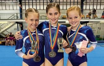 Ella Croatto Level 3, Amity Baxter Level 4, and Adelyn Goggi Level 3 with Coach Amy Cranitch (Photo Supplied)