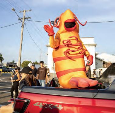 Eighth Avenue doubled as a festival runway last Saturday afternoon, as Hollywood rolled onto Home Hill’s front doorstep in the form of 38 exuberantly decorated floats for the Harvest Festival Grand Parade.