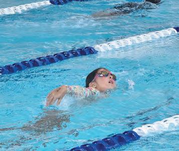 stroke events, along with the 50-metre butterfly. Younger students, aged eight and under, spent the day rotating through sponge relays and water-park games.