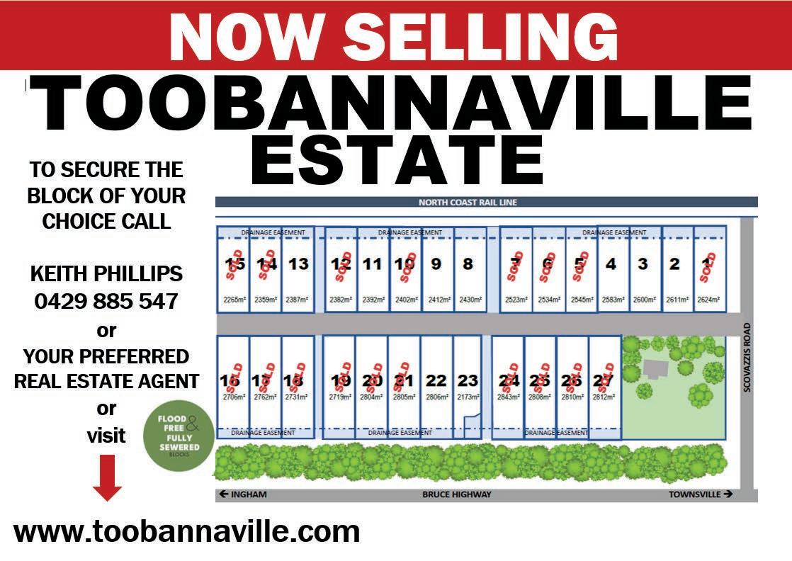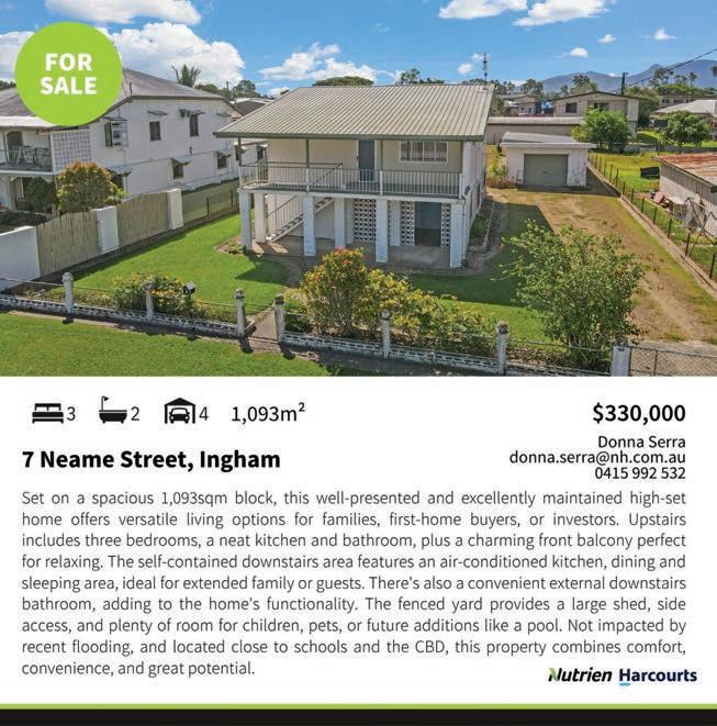 106 Lannercost Street, Ingham Qld 4850 Ph: 4776 2393 A/H Mob: 0419 024952