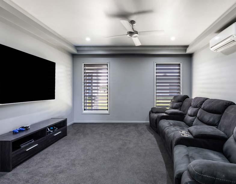 Heading back inside, a large, separate media room with a statement bulkhead and LED strip lighting sits poised to enhance your evening movie experience.
