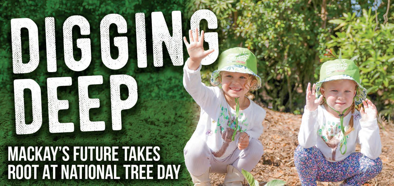 ingers in the dirt, boots muddy and smiles wide – more than 300 local students rolled up their sleeves at Glenfields Park last Friday for a hands-on lesson in giving back to the planet. As part of Mackay Regional Council’s 16th annual partnership with Planet Ark for National Tree Day, children from nine schools across the region planted over 3,000 native seedlings grown specially by the Mackay Natural Environment Centre. The event transformed Glenella’s parklands into a buzzing outdoor classroom, with students helping restore the riparian habitat along Goosepond Creek.