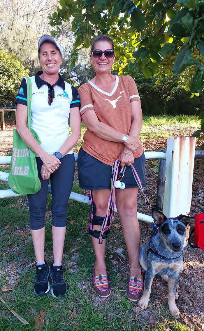 Mackay Road Runners Club Secretary, Julie Whibley (left) with Helen Leven and Dulcie the cattle dog
