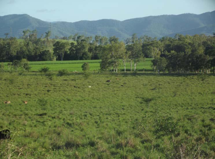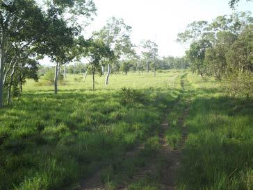 Tropical pastures establishing over gently undulating formerly cultivated land. Fully stock fenced.
