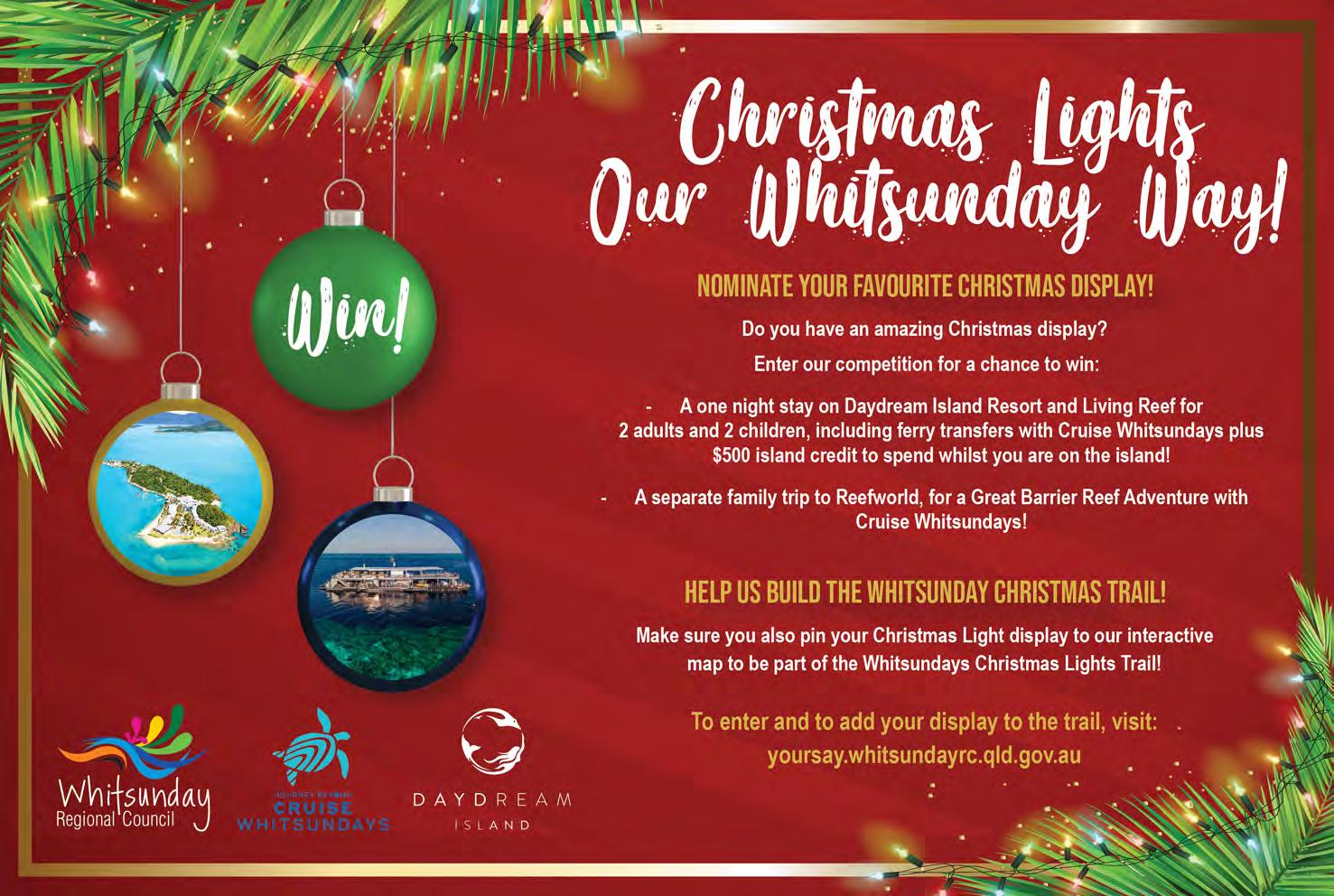 read on page 32 9 Warrain St, Shute Harbour FEATURE PROPERTY WEEKLY PROPERTY GUIDE INSIDE Exclusive Position – Whitsunday Island Views SHOP LOCAL AND SUPPORT SMALL BUSINESS CHRISTMAS CAMPAIGN KICKS OFF WITH SPECIAL TWO-PAGE FEATURE COMMUNITY PROJECT RESTORES VINTAGE BOAT SEVEN DECADE OLD WOODEN VESSEL LAUNCHED THIS WEEK