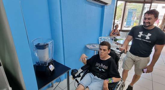 wheelchair, James was able to help put the ice-cream, milk and flavouring in and then press the button.