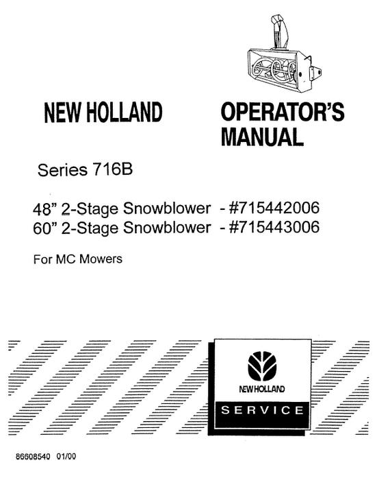 1. Explore the Mc Mowers .716B Series 48 inch and 60 inch Snowblower with the New Holland Operator's Manual 86608540. Find all the information you need in one place.