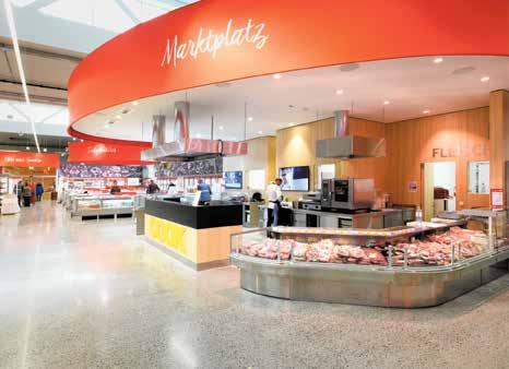 Mittelpunkt in jedem Transgourmet ist der Marktplatz (l.). Gehören zum Qualitätsbekenntnis: Haubenköche im eigenen Kochstudio (u.).
