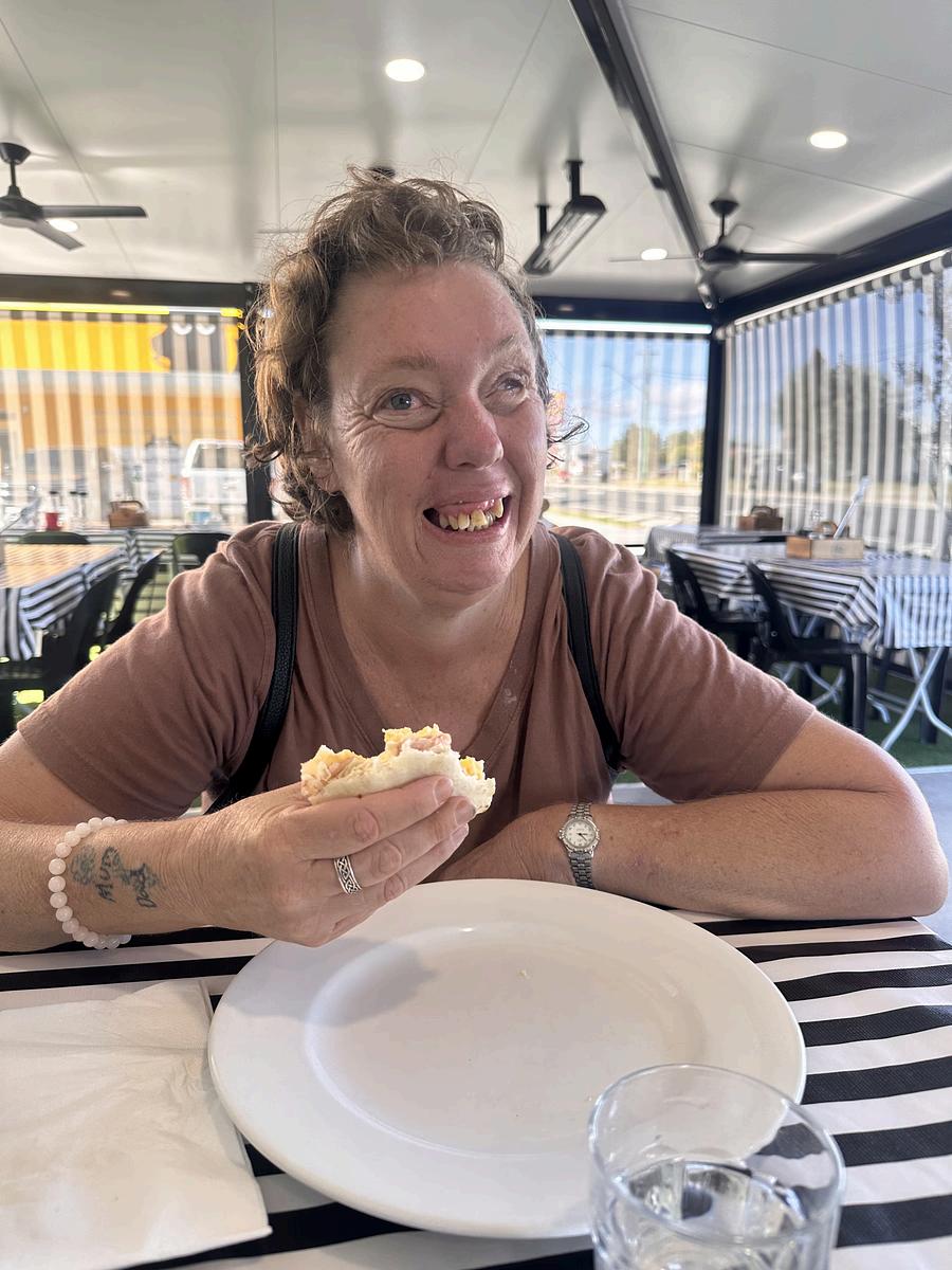 "Look at this beautiful person �� I genuinely enjoy my time I have with Donna (not that I don’t with others, you know what I mean!) and after 3 years we pretty much know each other like family �� we had a sneaky brekky yesterday morning at cafe 63 ($5 for a bacon and egg wrap you can’t go wrong!) I want to shout out to this fiery, spirited, loving human being for how well she has been doing lately. Well done Donna ��"