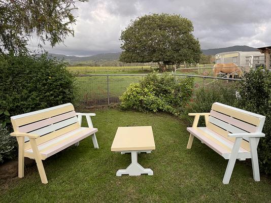 “Iwanttogiveashoutout toourtalented woodworkers,Wayne& Billy,Ilovemynewoutdoor setting-Ipurchased,I gaveitacolourfulcoatof paintandit’smyfavourite newaddition!!”