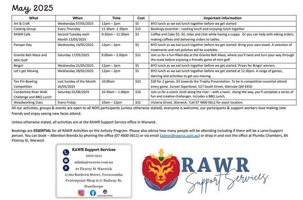 Good news, RAWR has passed with no major or minor non conformances, which is just fantastic. Thanks to everyone, as we all play a part in this success. The auditors contact participants, support staff, support coordinators and managers, so we all play a part in the successful outcome, thankstoall.