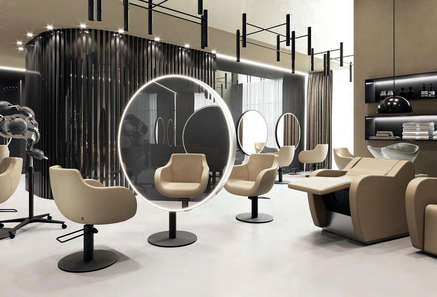 A beautifully circular, versatile wall unit to fit any salon’s style and available in a range of laminates.