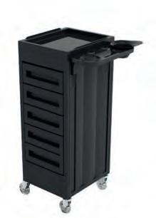 Includes the write & wipe pen and heat resistant non-slip mat, 3 x premium tint bowls & brushes, removable bin for all your recyclable foils, all on hair-free wheels with breaks. Available in black or Rose Gold.