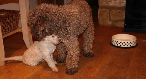 The second generation (F2) Labradoodle is sturdy and the size of a small Labrador. They have curly ‘hair’ which is hypoallergenic and a marvellous nature – the friendly, loving Labrador and the intelligent and sensitive Poodle.