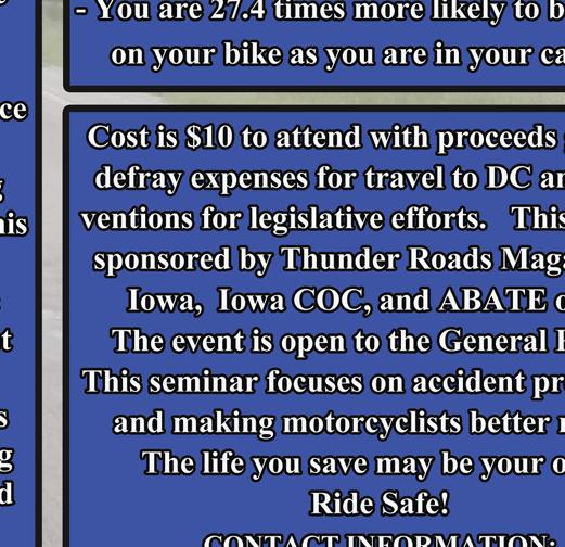 Another part of this time of year that is of interest though is that the Iowa Lawmakers are knee deep in the new session. There are state and federal level things that are happening, or need to happen to keep our rights intact so that we can keep enjoying our two and three wheeled lifestyle. Attacks on our rights are at an all-time high. As we are minorities