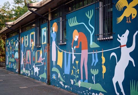 Die Wandgemälde, die von der öffentlichen Hand und manchmal auch privat finanziell unterstützt werden, sind eine Form der Street Art. Geschaffen wurden sie von Künstler:innen, die sich nicht nur auf lokaler Ebene einen Namen gemacht haben.