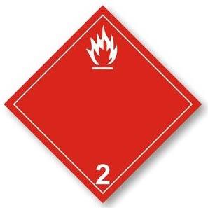 Značky používané na označenie obalov a prepravných prostriedkov takýchto plynov nesú číselné označenie triedy ADR pre plyny (2) v spodnej časti farebného kosoštvorca. Farba kosoštvorca je závislá od horľavosti plynu (červená pre horľavé, zelená pre nehorľavé plyny) Okrem farby poukazuje na horľavosť plynu aj značka plameňa, nehorľavé plyny sú označené tlakovou fľašou. Farba písma a značiek môže byť čierna alebo biela.