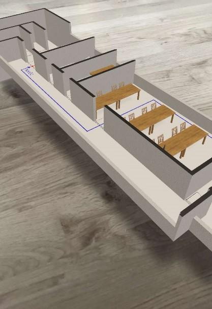 povrch kde zobrazí model. Aplikácia má problém zobraziť objekty na lesklé povrchy. Ak aplikácia nájde rovný povrch, zobrazí sa ohraničená plocha vyplnená bielymi bodkami, kde aplikácia zobrazí 3D model. Následne si treba model pohybom mobilného zariadenia umiestniť na vhodnú plochu a kliknutím na obrazovku sa 3D model ukotví na povrch a môžete si ho prezrieť.